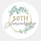 Sticker Rond Élégant Anniversaire de Mariage de 50 ans Fleur Or