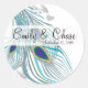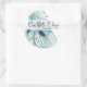 Sticker Rond Elégant Aqua Grey 3 Peacock Feaths Mariage