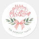 Sticker Rond Elégant Aquarelle Bow rose Joyeux Noël
