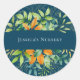 Sticker Rond Elégant Aquarelle Verdure Feuillage Botanique Bleu