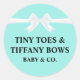 Elevate your celebration with our Tiny Toes & Tiffany Bows baby shower sticker . Designed to add a touch of elegance and charm, this stylish bag features a chic turquoise color and a luxurious finish, making it the perfect way to present your party favors. Whether for a bridal shower, baby shower, or special event, these stickers offer a glamorous touch that will leave your guests feeling extra appreciated. Perfect for sealing treat bags or baby shower invitations!