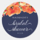 Sticker Rond Élégant Baby Shower Bleu Nuit et Pavot Doré