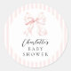 Élégant autocollants de baby shower qui comporte des rayures rose et blanc clair et un design d'arc simple