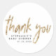 Des autocollants de faveur modernes et simples pour votre fête de baby shower. La grande police sur le design dit "merci" en fausse parties scintillant d'or. Customisez ce produit en ajoutant le nom et la date de l'événement de la momie. Cette conception fonctionne aussi bien pour les bébés filles que pour les garçons.