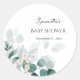 Elégant aquarelle eucalyptus baby shower Classic Round Sticke