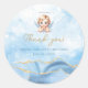 Sticker Rond Élégant Baptême Baptême Bleu Angel Garçon Baptême