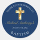 Sticker Rond Élégant Baptême Bébé Bleu Or Merci