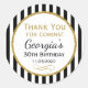Elegant birthday stickers featuring black and white stripes with sophisticated gold glitter frame. These fashionable and stylish birthday stickers veut be a hit for any birthday party decor as favor tags. Great for 21st30th35th45th45th50th60th65th75th85th85th95th, 100th and any age! They say "Thank you for coming".