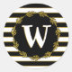 Sticker Rond Élégant Black White Gold Stripes Wreath Monogramme