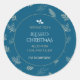 Sticker Rond Elégant Blanc Feuilles d'hiver bleu