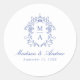 Sticker Rond Élégant bleu Chinoiserie Crest Monogram Mariage