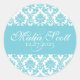 Sticker Rond Elégant bleu clair blanc Mariage damassé Favoriser