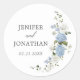 Élégant Bleu Hydrangée Roses Blanches Floral Mariage Classic Round Sticker