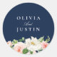 Sticker Rond Elégant bleu marine et fleurs rousses mariage