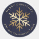 Sticker Rond Elegant Blue Gold Snowflake Christmas