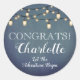 Élégant stickers de fête de retraite surprise bleu pour les sceaux d'enveloppe ou sacs cadeaux de faveur, avec des lumières à cordes chatoyantes et une combinaison de script et de typographie à visage ouvert sur un arrière - plan bleu foncé et ombragé qui passe du bleu clair au centre au bleu foncé sur les bords extérieurs pour un effet atmosphérique chatoyant doux. Parfait pour la célébration de la retraite des hommes ou des femmes.