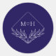 Sticker Rond Élégant Boho Leaf Monogramme Mariage bleu foncé