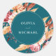Sticker Rond Élégant Boho Turquoise Chic Floral Mariage