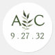 Sticker Rond Élégant Cadres minimaux Feuille vert Olive Initial