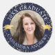 Les autocollants photo personnalisés avec le titre CLASS YEAR GRADUATE et le nom de votre diplômé. Le design comporte des capuchons de graduation métallique en or et des confettis en or dans votre choix de couleur arrière - plan (en bleu marine) que vous pouvez changer à une couleur d'école ou de couleur préférée dans EDIT. Utilisez comme scellés de l'enveloppe postale de graduation ou de la partie de graduation pour remercier les autocollants. ASSISTANCE : Pour obtenir de l'aide sur la modification/la personnalisation de la conception, le changement de couleur, le transfert de la conception vers un autre produit ou si vous souhaitez coordonner des éléments, contactez le concepteur AVANT DE COMMANDER via l'onglet MESSAGE Conversation Zazzle ou par courriel à l'adresse makeitaboutyoustore@gmail.com.