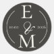 Sticker Rond Elegant Charcoal Modern Monogram Date Wedding