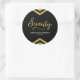 Cet élégant autocollant rond d'anniversaire comporte un chevron géométrique moderne et le mot "Soixante-dix" en faux or contre un arrière - plan noir. C'est génial pour une fête du 70e anniversaire. Consultez les invitations et les éléments correspondants ici http://www.zazzle.com/collections/modern_faux_gold_chevron_celebration_collection-119531050277382712?rf=238364477188679314 Personnalisez-le avec vos détails en remplaçant le texte de l'espace réservé. Pour plus d'options, cliquez sur le bouton "Customiser". *Veuillez noter que le filigrane Zazzle qui apparaît dans l'aperçu du zoom n'apparaîtra PAS sur le produit imprimé final. © Bois de rose et agrumes