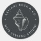 Étiquette votre correspondance d'affaires ou vos produits avec ces autocollants chic qui correspondent à notre suite de marque Conch Shell pour coiffeurs, salons ou toute entreprise basée sur la plage ou sur l'île. Des autocollants noirs souples et riches présentent au centre une illustration fausse coquille à feuilles argentées, avec deux champs de texte courbant autour de l'extérieur, en lettres blanches classiques.