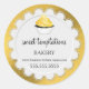 © 2021 Socialite Designs Inc. Cet élégant cupcake, avec un look arrière - plan en feuille d'or, autocollants sont un design merveilleux à utiliser comme sceaux sur l'emballage de boulangerie.