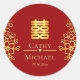 Sticker Rond Élégant double bonheur chinois mariage floral