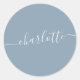 Élégant Dusty Blue Script Nom Personnalisé Classic Round Sticker