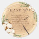 Élégant & Chic Rustic Mariage Merci classique rond Sticker Express votre gratitude avec notre élégant et chic bâton de remerciement en bois rustique. Conçu dans une forme ronde classique, cet autocollant est doté d'une étonnante texture de grains de bois qui ajoute un charme rustique à vos faveurs de mariage et cadeaux. Les tons chauds et terreux créent une atmosphère chaleureuse, reflétant parfaitement l'amour et la chaleur de votre journée spéciale. Orné d'un texte de remerciement magnifiquement écrit, cet autocollant offre une touche personnelle, assurant que votre message sincère résonne avec vos invités