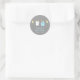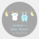 Un autocollant mignon pour décorer la fête du baby shower favorise! Il dispose de mini vêtements pour bébé et d'accessoires qui comprennent des articles comme des chaussettes jaunes pour bébé, une combinaison blanche pour bébé avec une cravate arc et une couette bleu pastel avec une poche suspendue sur un fil de linge avec des chevilles en bois. Idéal pour les baby showers qui célèbrent la naissance des bébés garçons. Les couleurs pastel se distinguent sur l'arrière - plan gris et lui donnent une élégance. Personnalisez facilement avec votre message de fête.