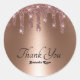 Sticker Rond Elégant et Stylé Merci Rose Doré Faux Paillettes