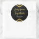 Cet élégant autocollant rond d'anniversaire comporte un chevron géométrique chic et le mot "Quarante ans ensemble" en faux or contre un arrière - plan noir. C'est génial pour une célébration du 40e anniversaire de mariage. Consultez les invitations et les éléments correspondants ici http://www.zazzle.com/collections/modern_faux_gold_chevron_celebration_collection-119531050277382712?rf=238364477188679314 Personnalisez-le avec vos détails en remplaçant le texte de l'espace réservé. Pour plus d'options, cliquez sur le bouton "Customiser". *Veuillez noter que le filigrane Zazzle qui apparaît dans l'aperçu du zoom n'apparaîtra PAS sur le produit imprimé final. © Bois de rose et agrumes