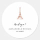 Ces stickers design pour les faveurs de mariage présentent une image en or rose de la Tour Eiffel, avec vos noms et date mariage en texte noir classique, et les mots "merci".