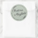 Sticker Rond Élégant Feuille Vert Nom personnalisé Entreprise