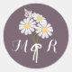 Sticker Rond Élégant floral blanc marguerites Monogram Mariage