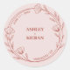 Sticker Rond Élégant Floral Turquoise Mariage