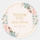 Cet élégant floral | pastel merci sticker rond classique est parfait pour votre mariage boho, rose printemps botanique. Le design comprend un cadre en feuille d'or accompagné d'un simple rose de champagne de pêche à l'aquarelle, d'une végétation minimaliste d'eucalyptus vert sauge et d'un fleur sauvage de pavot de corail neutre et moderne. Le design est luxueux, idéal pour un classique, élégant, délicat, chic été, automne ou mariage d'hiver. N'hésitez pas à nous contacter pour toute question concernant le design du produit ; encouragez !