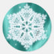 Sticker Rond Élégant Fluffy Snowflake Turquoise Green Faux Épar