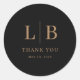 This elegant wedding sticker features a minimalist design with a solid black background and gold serif typography. The layout is centered, showcasing the initials "L | B" in bold, followed by the phrase "THANK YOU" below, creating a sophisticated and formal look. The clean lines and ample negative space emphasize clarity and focus, making it perfect for expressing gratitude at your special event. Its luxurious aesthetic and modern yet classic style make this sticker an ideal choice for any formal occasion.