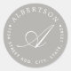 Sticker Rond Élégant Gris Script Monogramme Nom de famille Adre