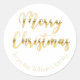 Sticker Rond Elégant Joyeux Noël or métallique look blanc