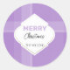 Sticker Rond Elégant Joyeux Noël Tartan Lilac Violet