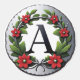 A stylish round emblem features a bold letter A framed by a lush green wreath with red flowers. Perfect for branding, invitations, or decorative designs seeking elegance and nature-inspired charm.