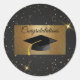 Élégant Sticker Classic Rond dispose d'une casquette noire de graduation sur parties scintillant or et arrière - plan de nuit étoilé, avec texte...Félicitations...Vous pouvez facilement personnaliser avec votre choix de texte.