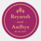 Sticker Rond Élégant Magenta Gold Couple Noms Mariage Indien