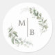 Sticker Rond Elégant Mariage Botanique Monogramme Enveloppe Sce