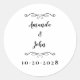 Sticker Rond Elégant Mariage Couples Noms Chic Black White Cla