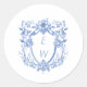 Sticker Rond Élégant Mariage de monogramme de crête bleue